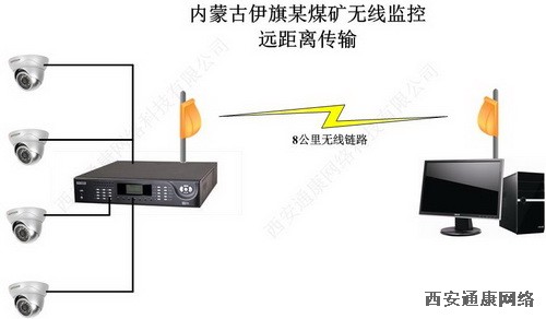 該項目將8公里外的煤礦下料場的實時監(jiān)控圖像,通過波迅通5.8G,300兆的無線網(wǎng)橋傳輸?shù)矫旱V總調(diào)度指揮中心。